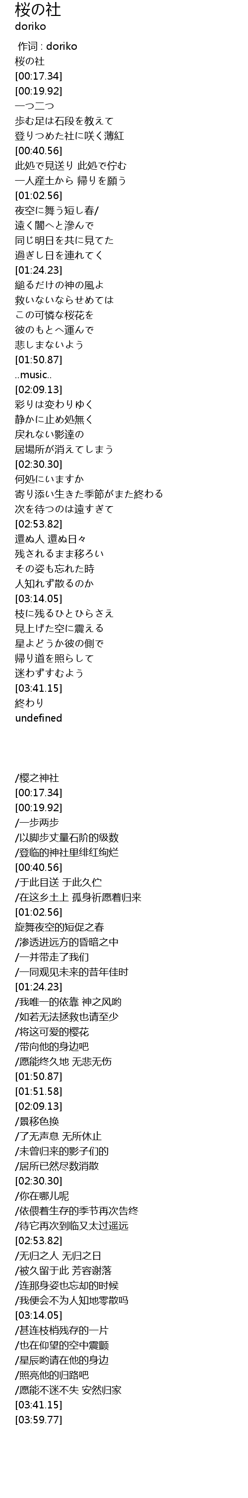 | [00:31.87] | 登りつめた社に咲く薄紅 |