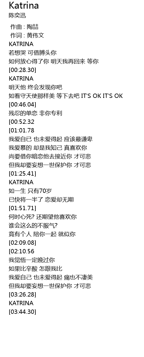 | [03:06.85] | 我爱自己 也未爱得起 痛也不凄美 |
