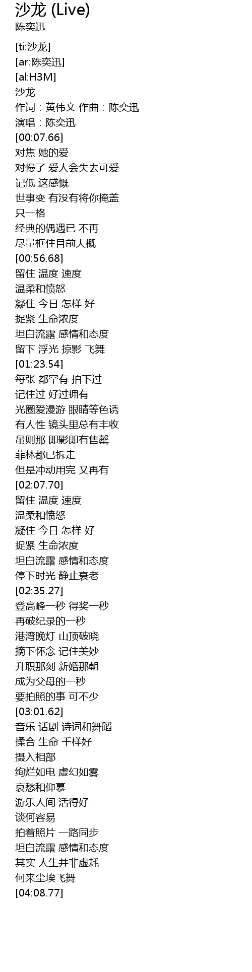 | [00:03.71] | zuò cí: huáng wěi wén zuò qǔ: chén yì xùn |