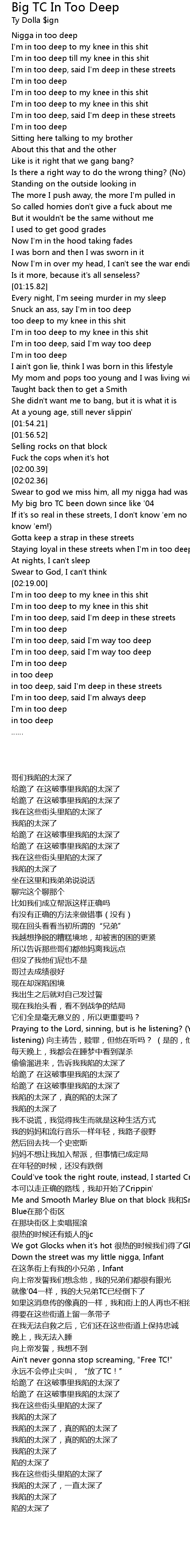 | [00:33.00] | I'm in too deep, said I'm deep in these streets |