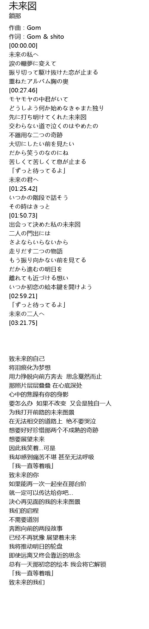 | [00:00.00] | 作词:Gom & shito |