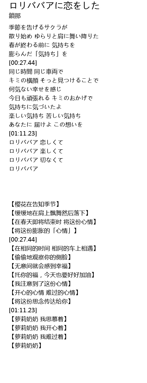 | [00:14.36] | 【在春天即将结束时 将这份心情】 |