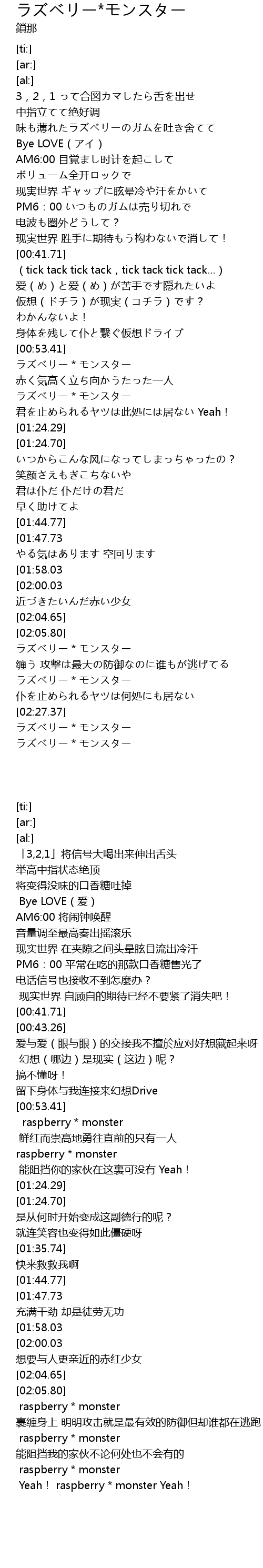| [02:33.10] | Yeah! raspberry*monster Yeah! |