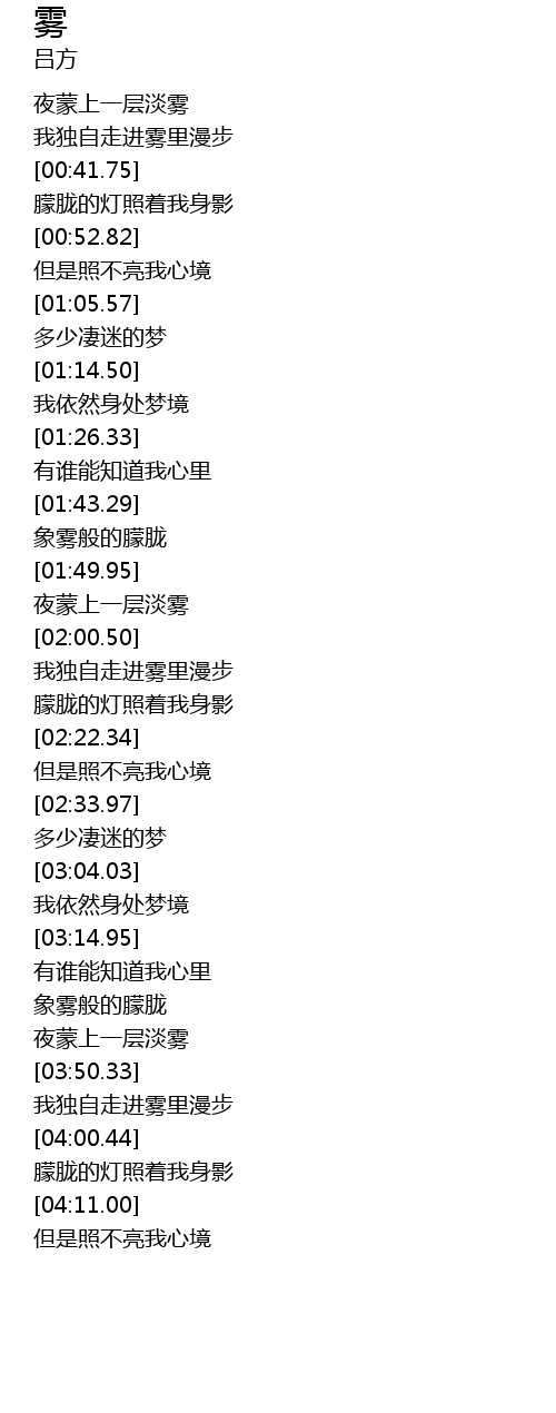 | [01:51.37] | 夜蒙上一层淡雾 |