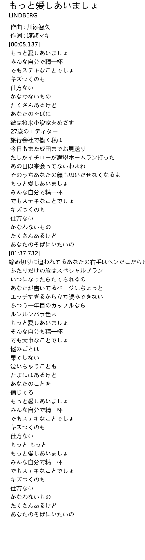 | [00:05.609] | もっと愛しあいましょ |