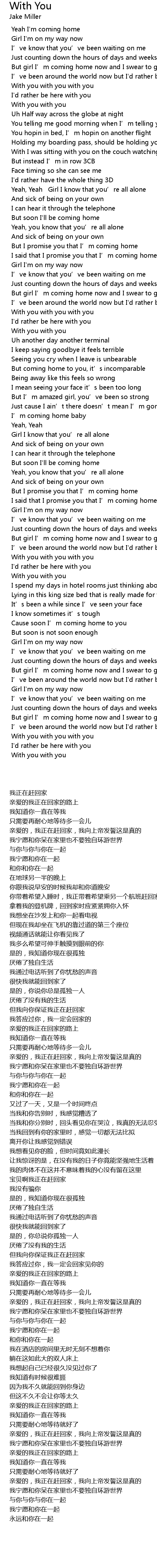 | [00:39.930] | 拿着我的登机牌,回到家时应紧紧拥你入怀 |