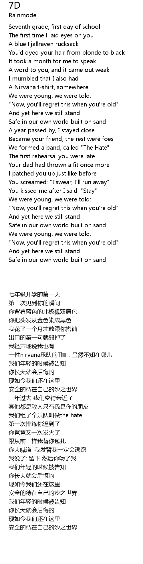 | [01:09.32] | "Now, you'll regret this when you're old" |