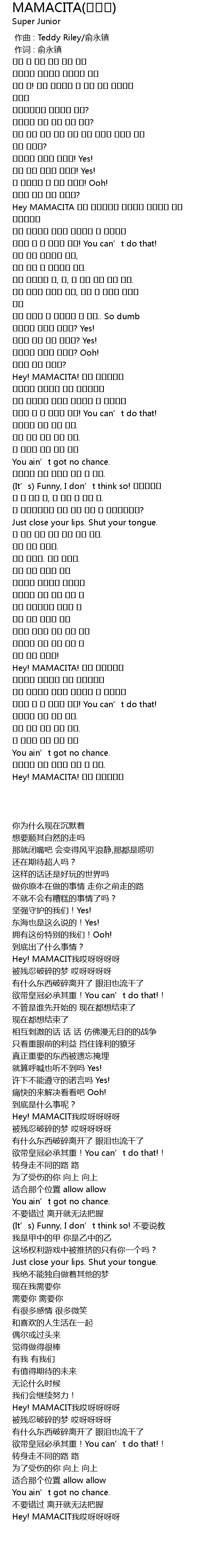 | [01:35.390] | Hey! MAMACIT我哎呀呀呀呀 |
