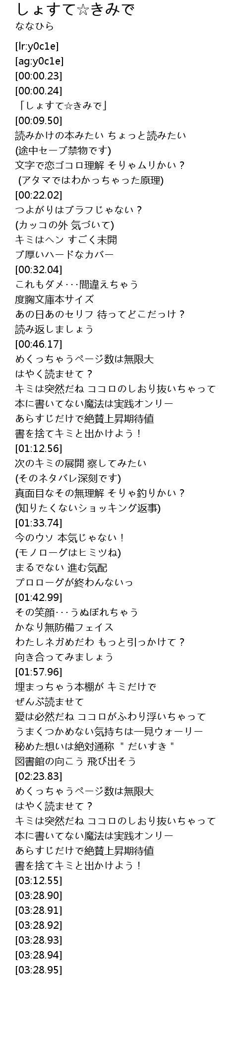 | [00:10.98] | 読みかけの本みたい ちょっと読みたい |