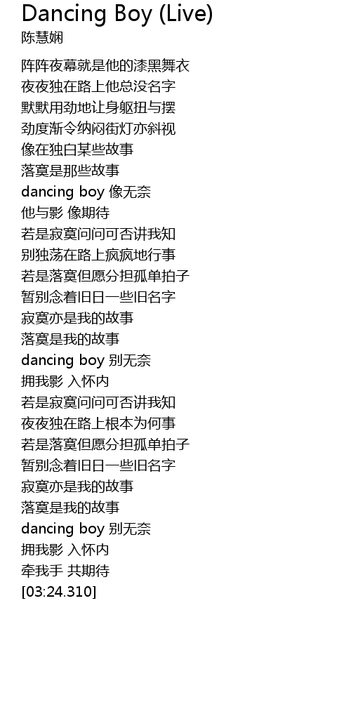 | [02:43.000] | 若是落寞但愿分担孤单拍子 |