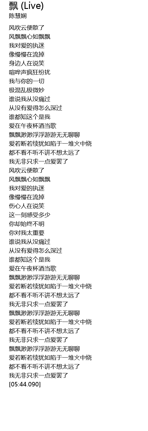 | [05:01.790] | 飘飘渺渺浮浮游游无无聊聊 |