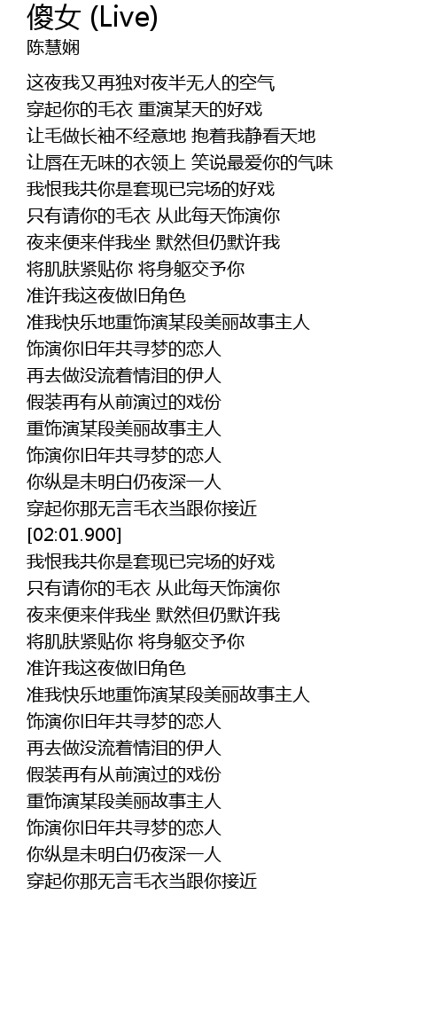 | 歌曲 | 傻女 (Live) |