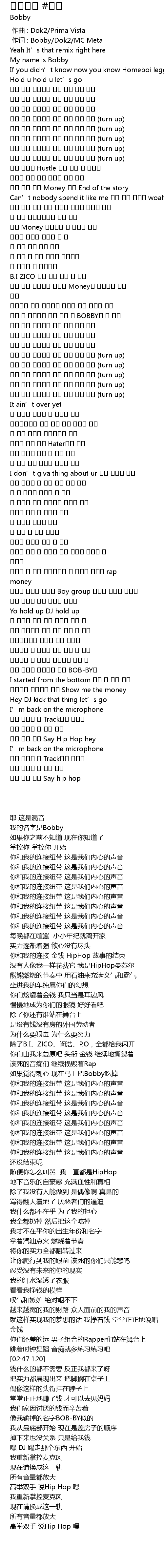 | [00:01.00] | zuo ci : Bobby Dok2 MC Meta |