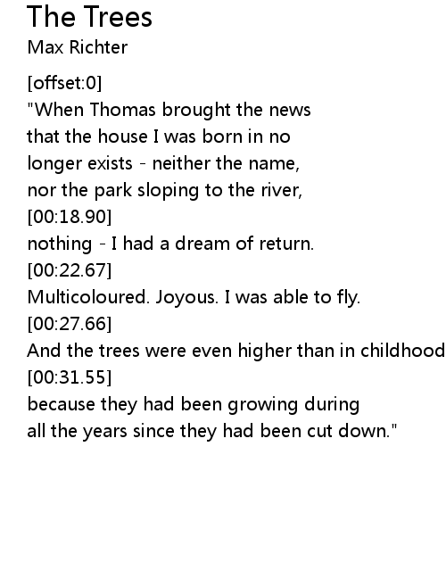 | [00:28.86] | And the trees were even higher than in childhood, |