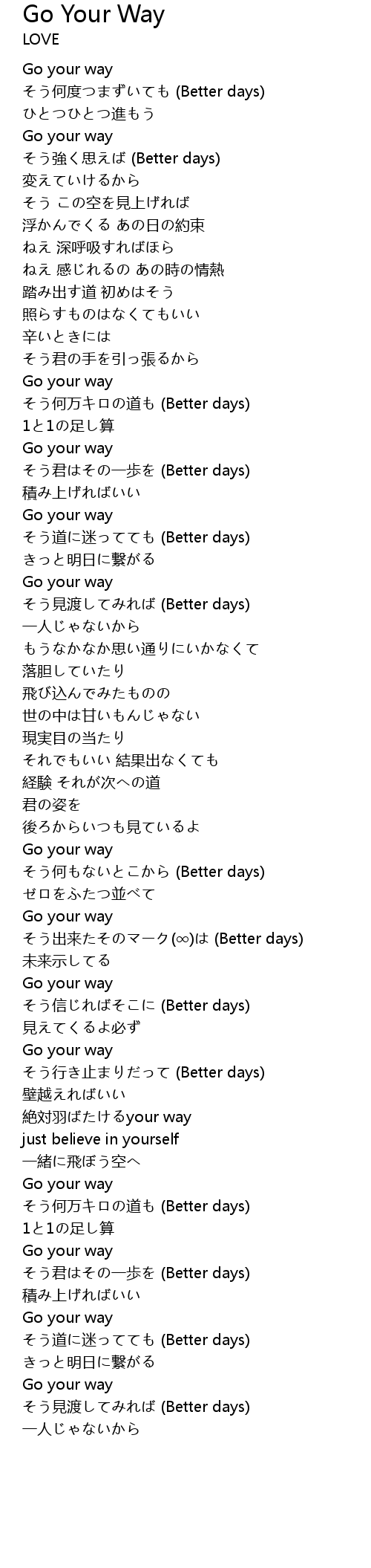 | 歌曲 | Go Your Way |