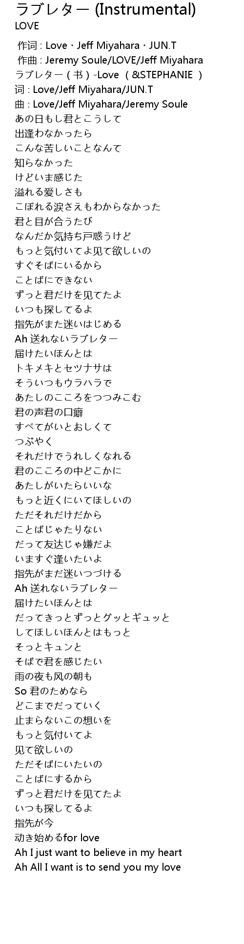 | [00:00.000] | zuò cí : Love Jeff Miyahara JUN. T |