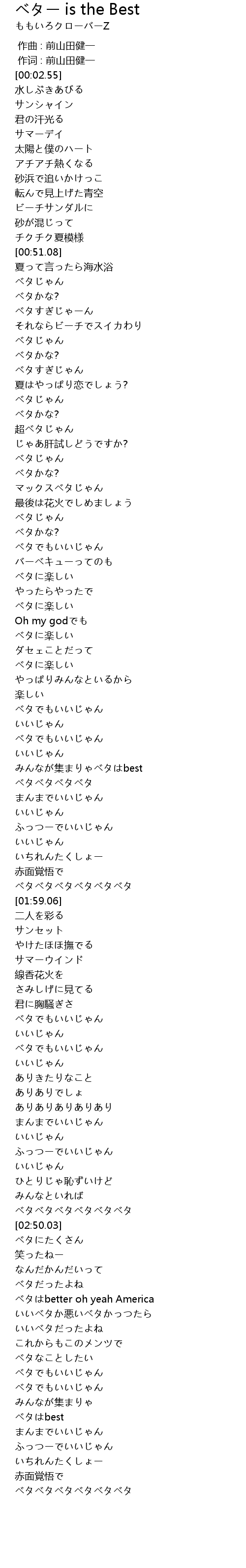 | [01:41.13] | みんなが集まりゃベタはbest |