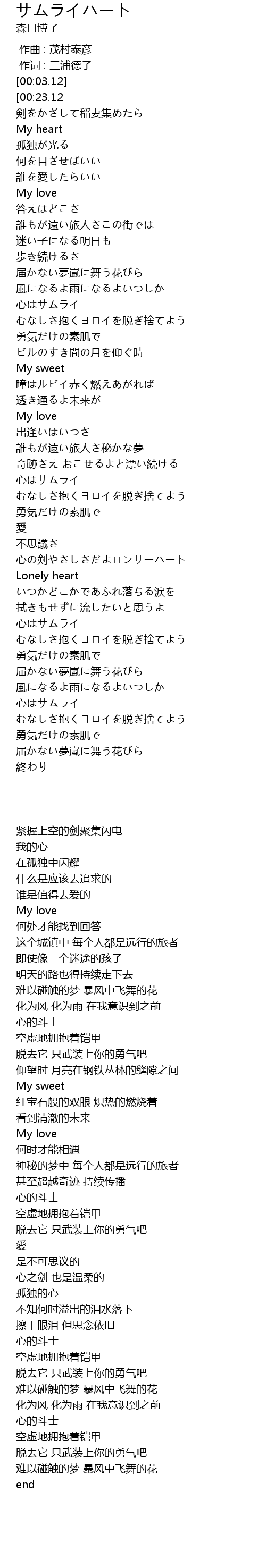 | [03:32.24] | 心はサムライ |