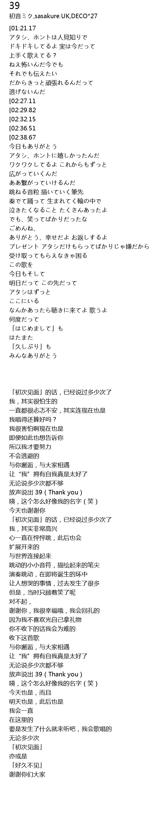 | [02:36.51] | 放声说出 39(Thank you) |