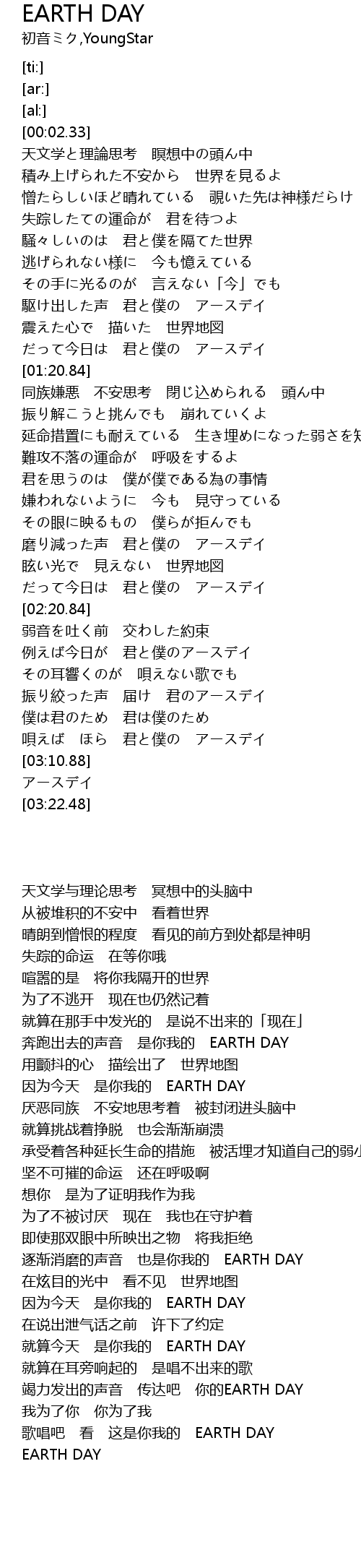 | [03:19.22] | EARTH DAY |