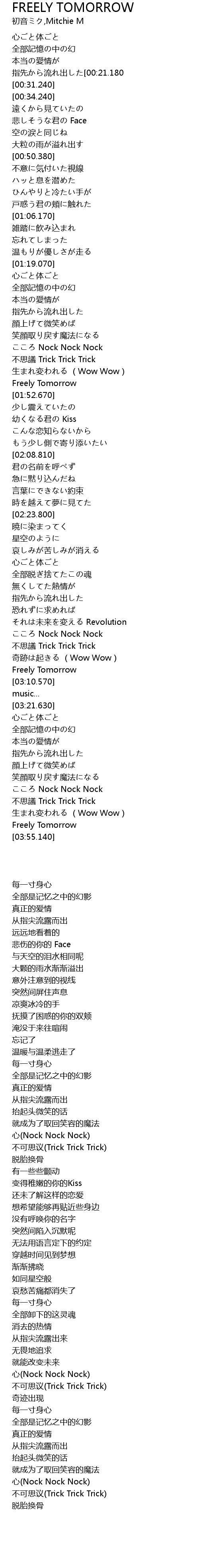 | [03:52.400] | Freely Tomorrow |