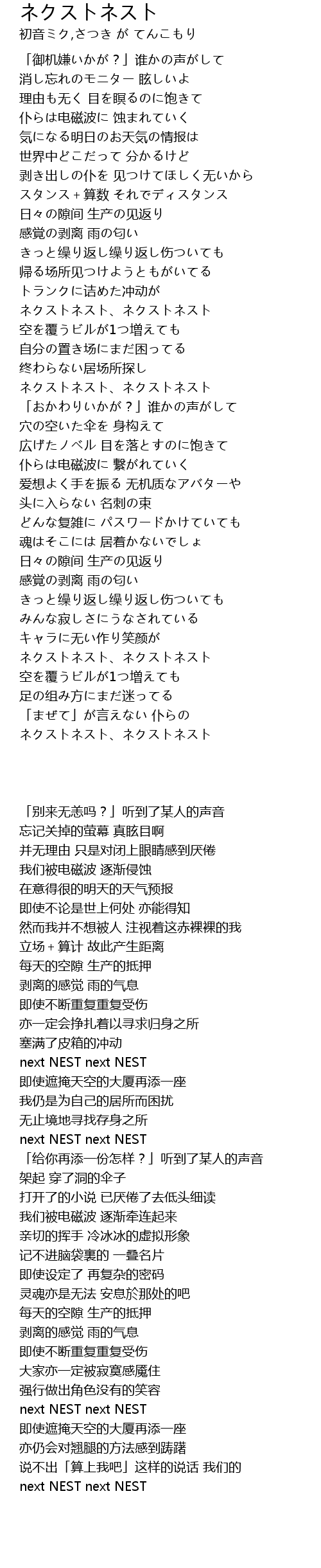 | [01:57.400] | ネクストネスト、ネクストネスト |