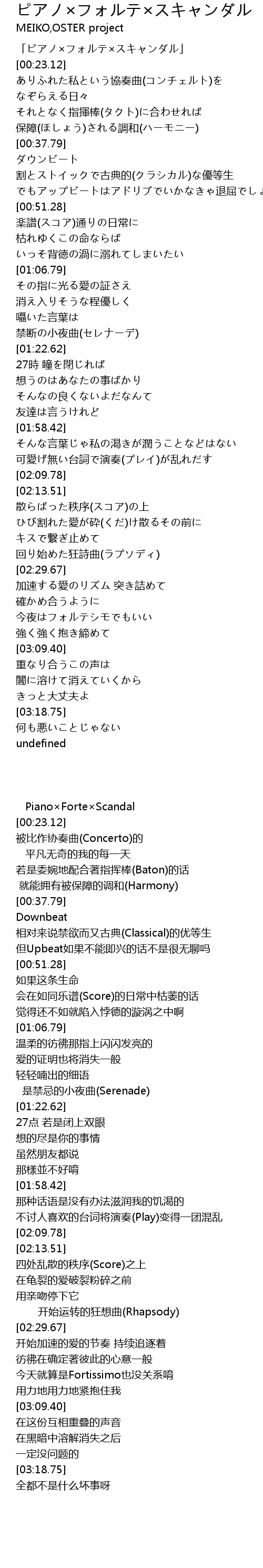 | [00:00.96] | 「ピアノ×フォルテ×スキャンダル」 |