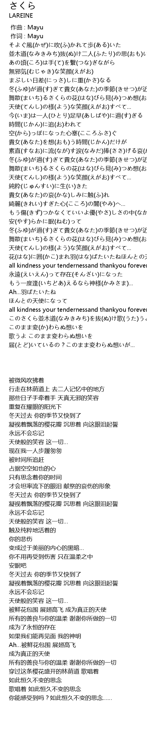 | [02:47.280] | 舞散(まいち)るさくらの花(はな)びら見(み)つめ想(おも)うこの涙(なみだ)に誓(ちかい)うよずっと忘(わす)れはしない |