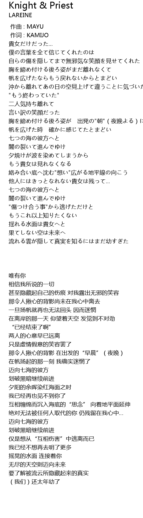 | 歌曲 | Knight & Priest |
