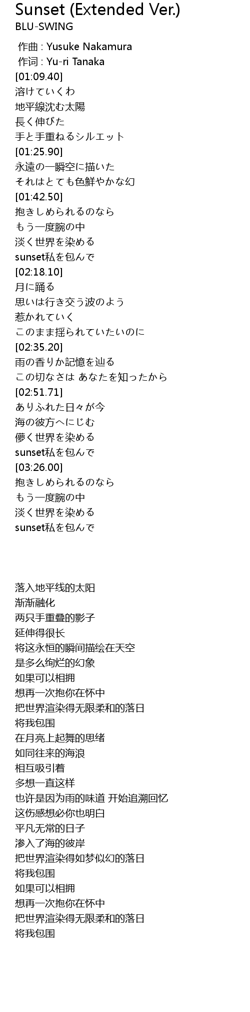 | [03:39.45] | sunset私を包んで |
