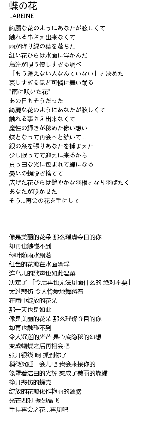 | [01:45.76] | 蝶となって再会へと続いて... |
