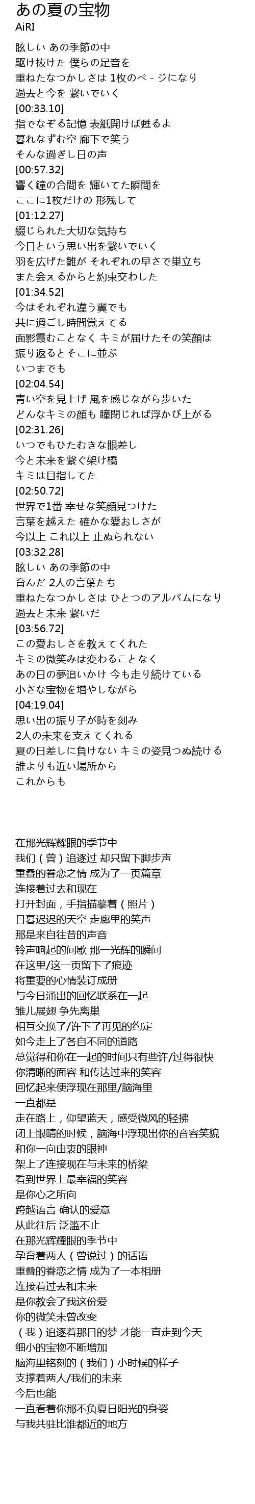 | [04:19.59] | 脑海里铭刻的(我们)小时候的样子 |