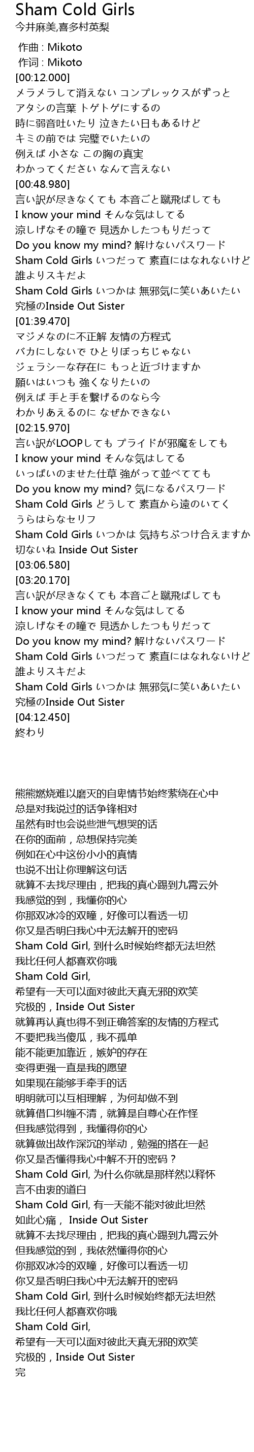 | [02:51.840] | Sham Cold Girl, 有一天能不能对彼此坦然 |