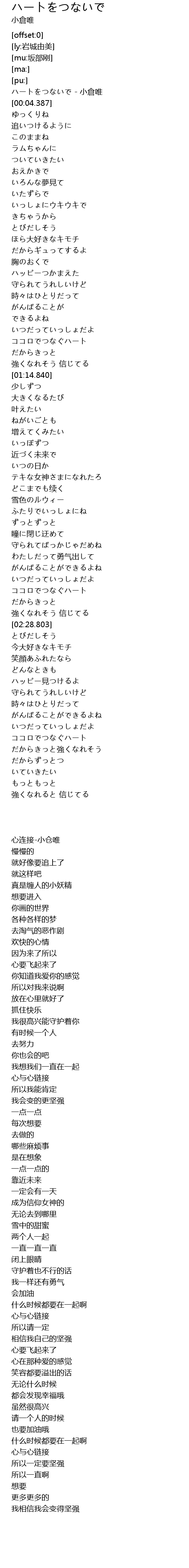 | [00:00.465] | ハートをつないで - 小倉唯 |