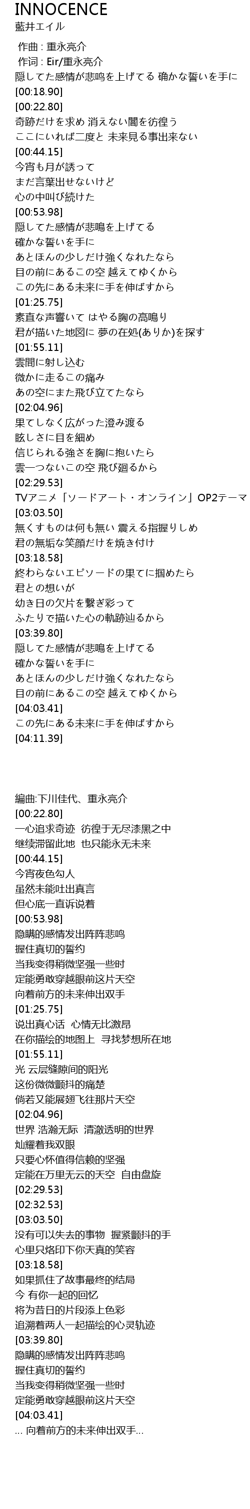 | [02:32.53] | TVアニメ「ソードアート・オンライン」OP2テーマ |