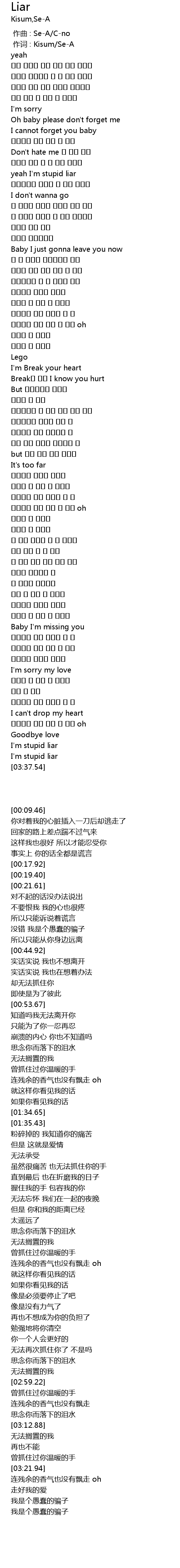| [00:16.60] | 사실 네게 한 소리 다 거짓말 |