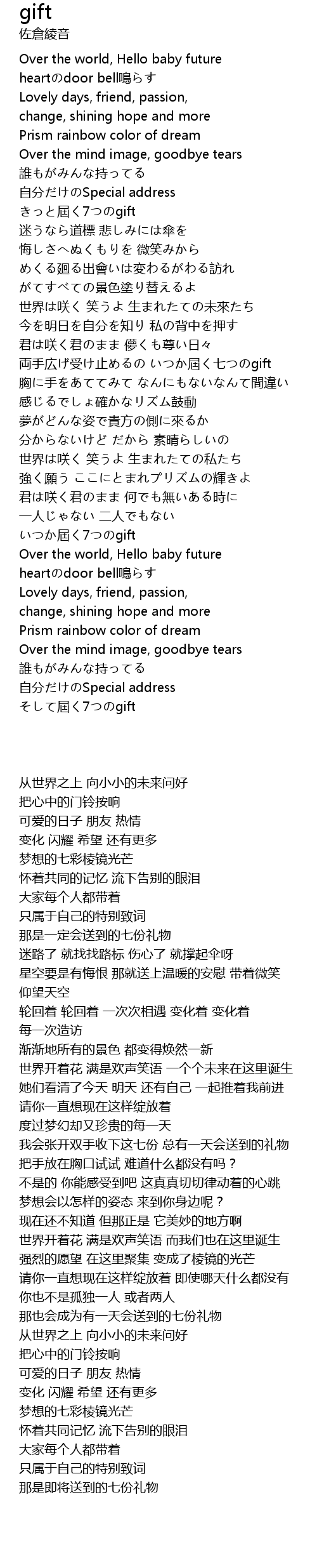 | [01:54.000] | 両手広げ受け止めるの いつか屆く七つのgift |