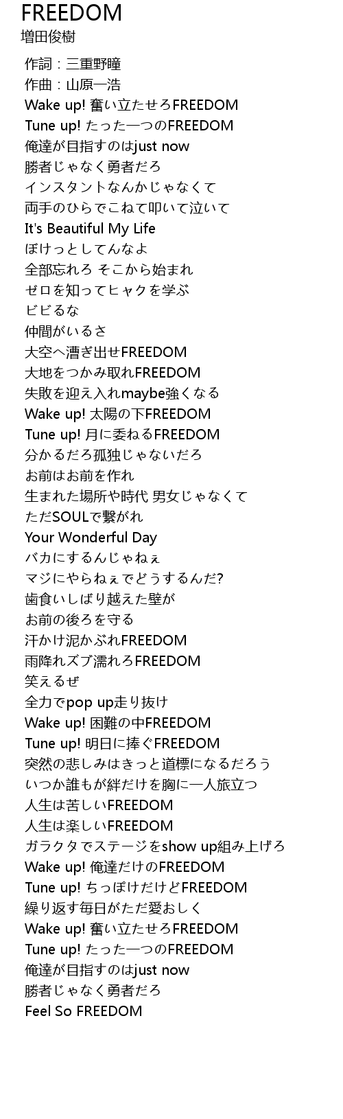 | [03:06.420] | Wake up! 奮い立たせろFREEDOM |