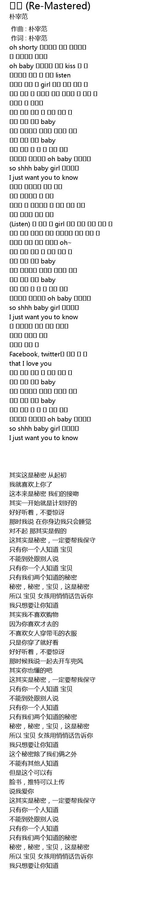 | [00:01.00] | 作词 : 朴宰范 |
