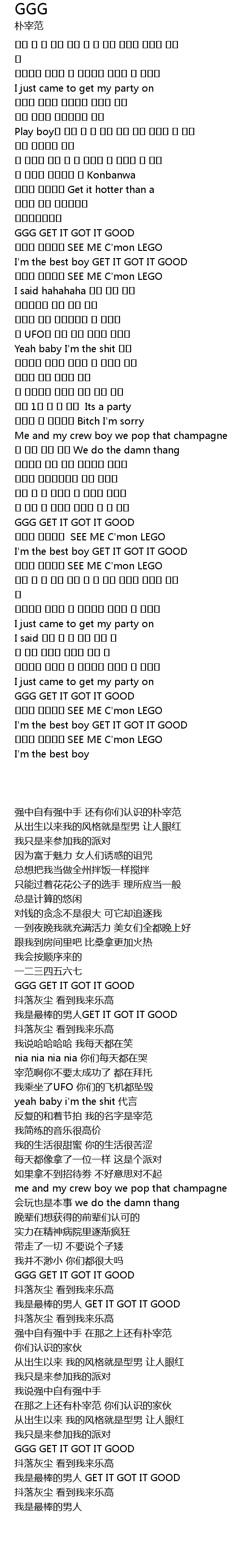 | [02:48.43] | I' m the best boy GET IT GOT IT GOOD |