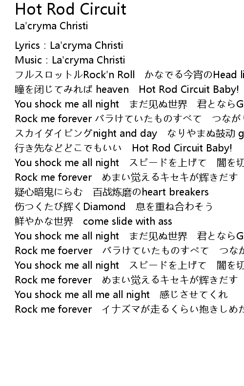 | 歌曲 | Hot Rod Circuit |
