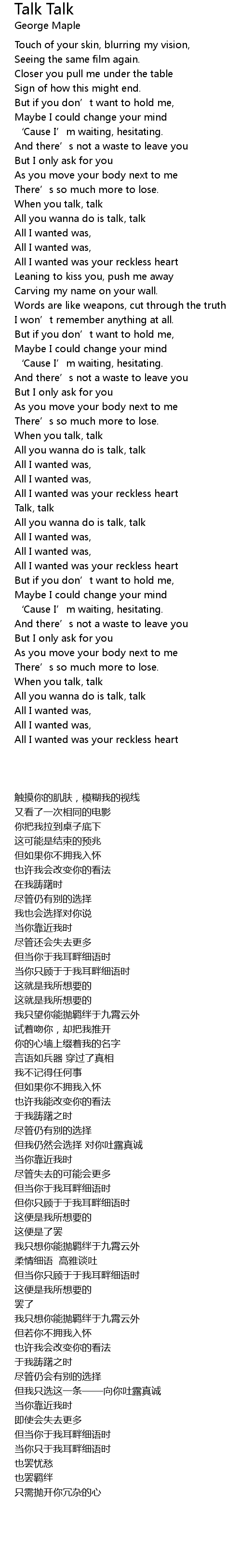 | 歌曲 | Talk Talk |