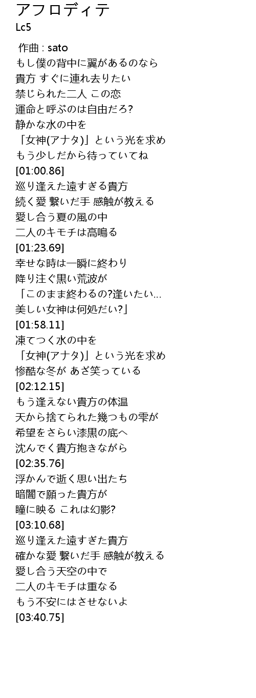 | [02:00.93] | 「女神(アナタ)」という光を求め |