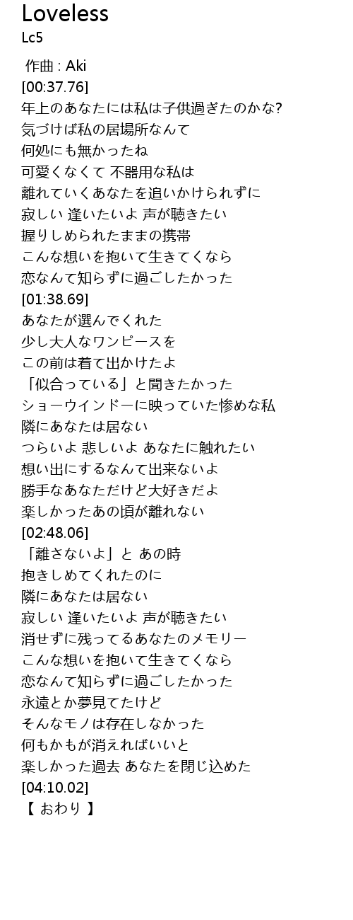 | [03:41.59] | 恋なんて知らずに過ごしたかった |