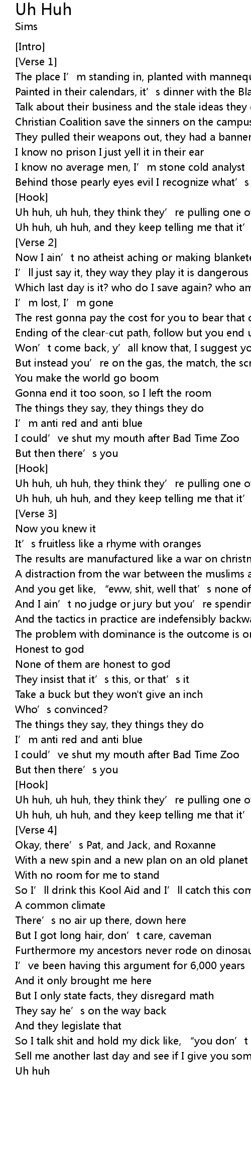 | Now I ain' t no atheist aching or making blanketed statements | |