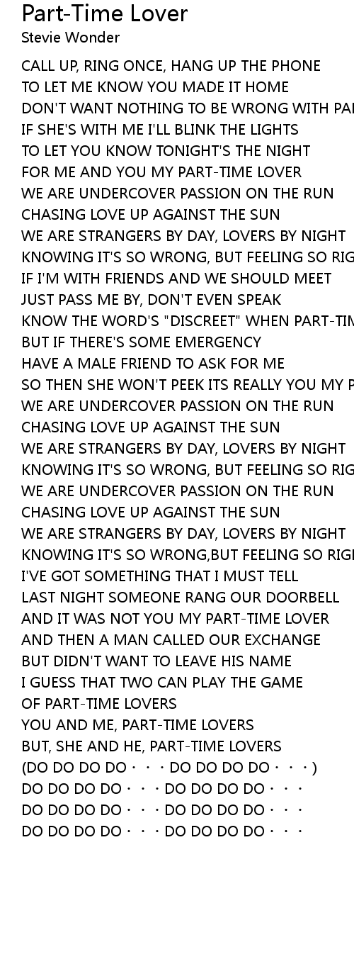 | DON' T WANT NOTHING TO BE WRONG WITH PARTTIME LOVER | |