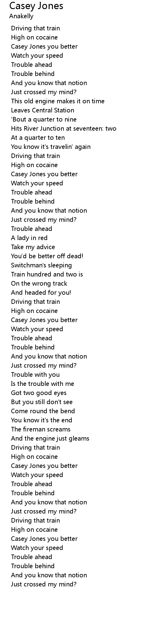 Casey Jones you better |