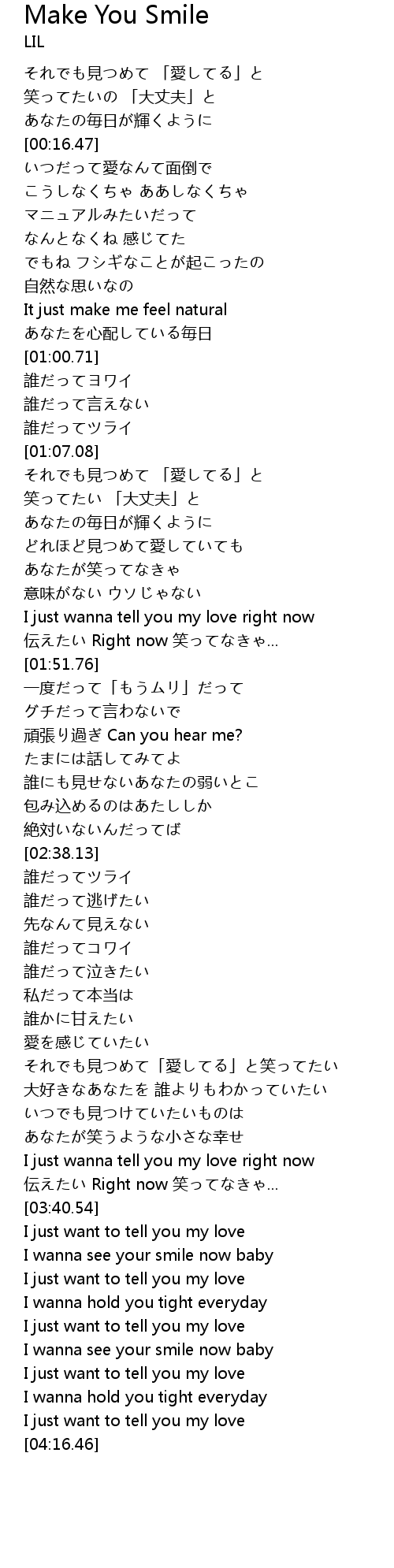 | [03:46.43] | I wanna see your smile now baby |