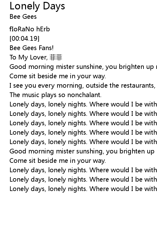 | [00:14.35] | Good morning mister sunshine, you brighten up my day. |