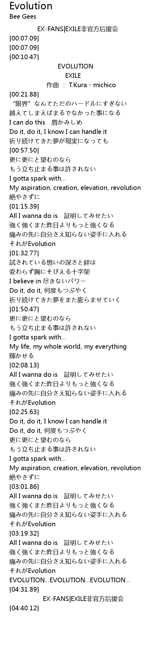 | [03:35.59] | Evolution |